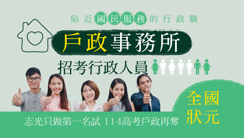 上班地點:戶政事務所、民政局;三重區公職補習班,提供專業輔考課程 ,離家近節省交通時間,雲端視訊、函授課程學習便利,上榜生推薦,歡迎加入三重志光line預約免費試聽唷