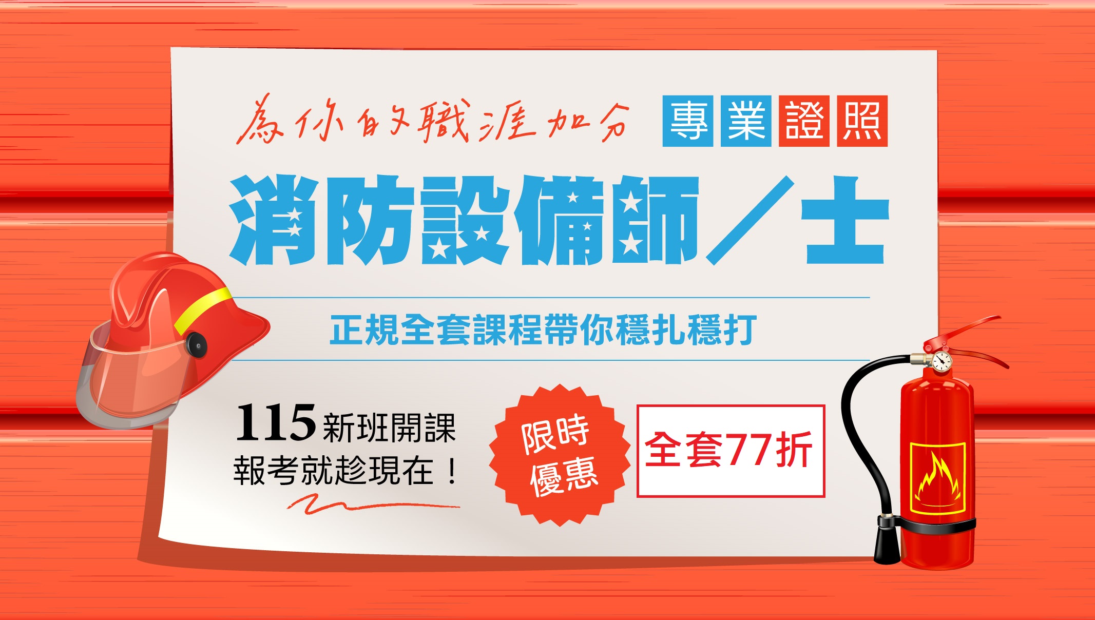 【證照快報】115專技消防設備師/士 持照把關更保障