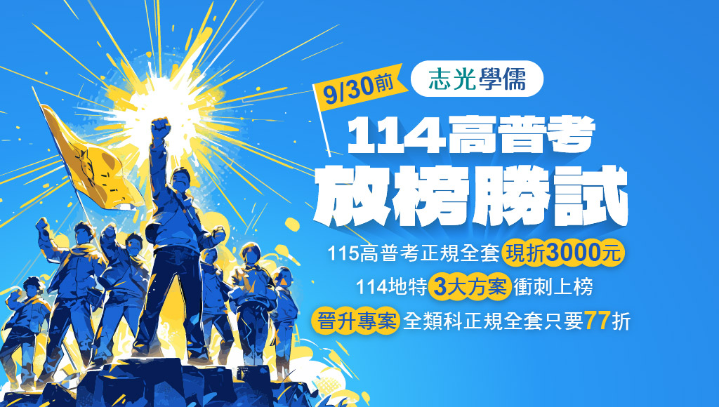 【放榜優惠】 9/30前持114高普考成績單報名享優惠