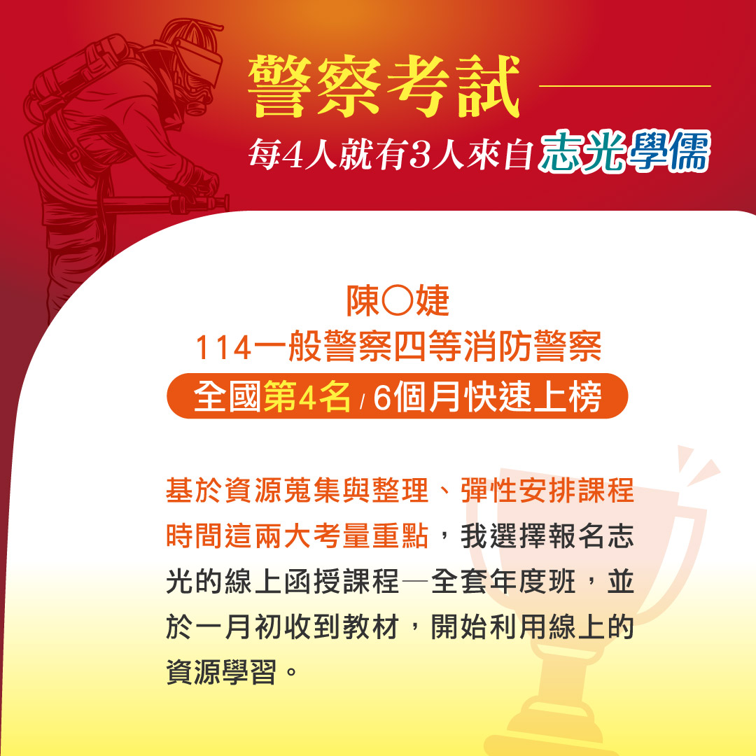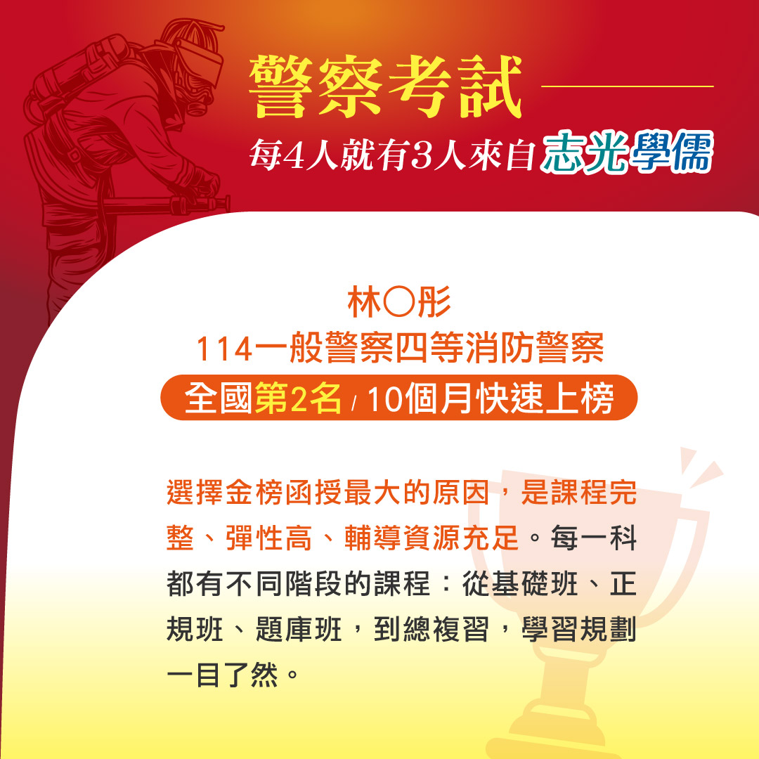 標籤: 一般警察-四等   行政警察人員   消防警察人員   基隆志光