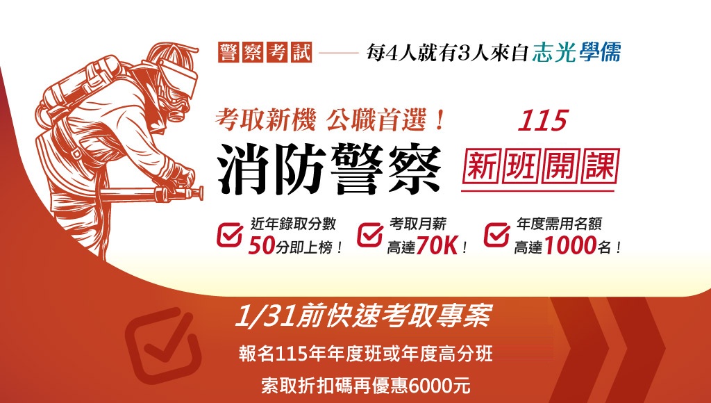 【消防警察】想當消防英雄?115新班2/28前限時優惠
