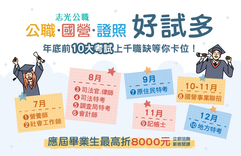 也可以選擇考科較少的考試做準備,這樣一畢業就能有一份穩定的工作囉!