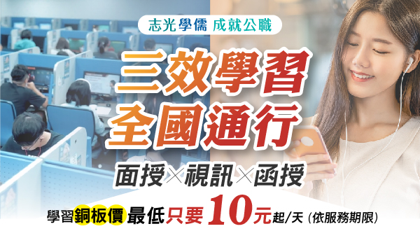多元學習管道任君挑選 雲端視訊/函授 ; 志光/學儒數位學院、超級函授、金榜函授 、台北志光面授