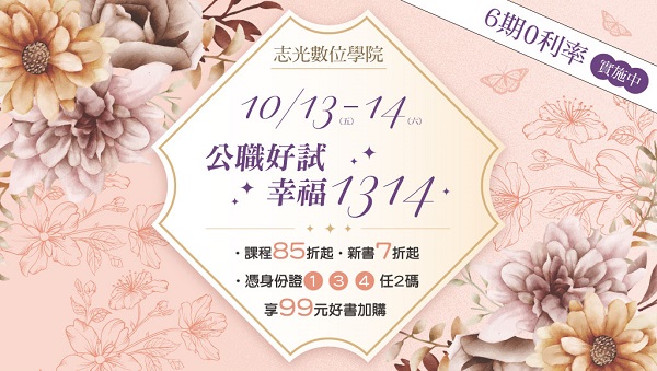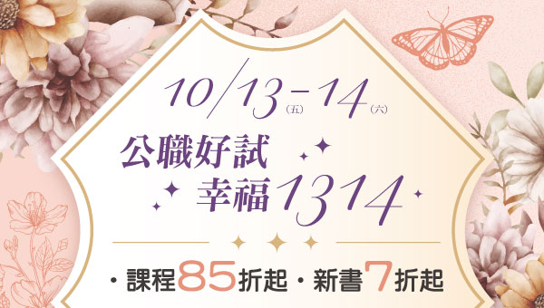 【活動優惠】10/13-14 公職好試.幸福1314 最強應援課程85折起