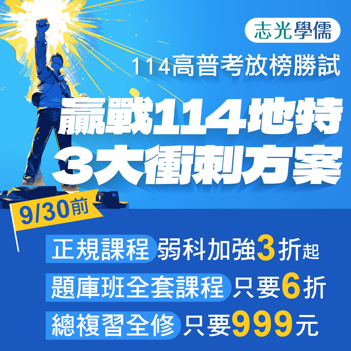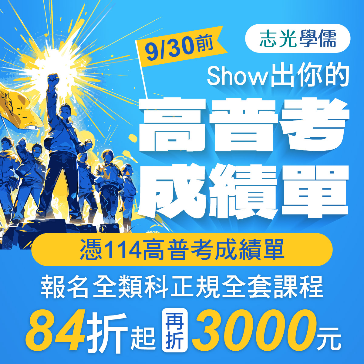 【放榜優惠】 9/30前持114高普考成績單報名享優惠