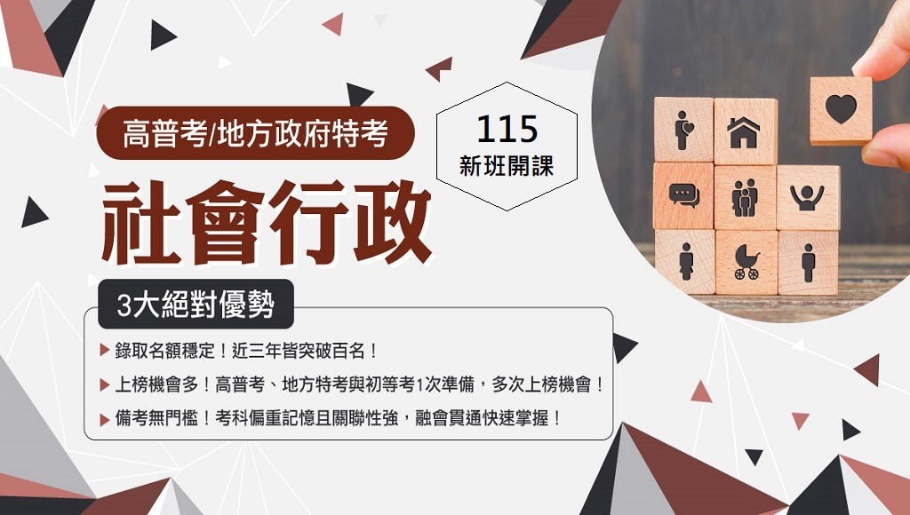 擁有愛心、耐心與願意協助弱勢族群找到一線曙光的你,快來加入社會行政的行列!「社會行政」簡單地說就是分發到各地的老人之家、教養院、榮民服務處、職訓局就業服務中心、社會局等單位,從事社會福利、社會政策等工作,工作內容是輔導學員或單親家庭、辦理輔導活動及社會救濟、低收入戶救助及以工代賑等業務。
