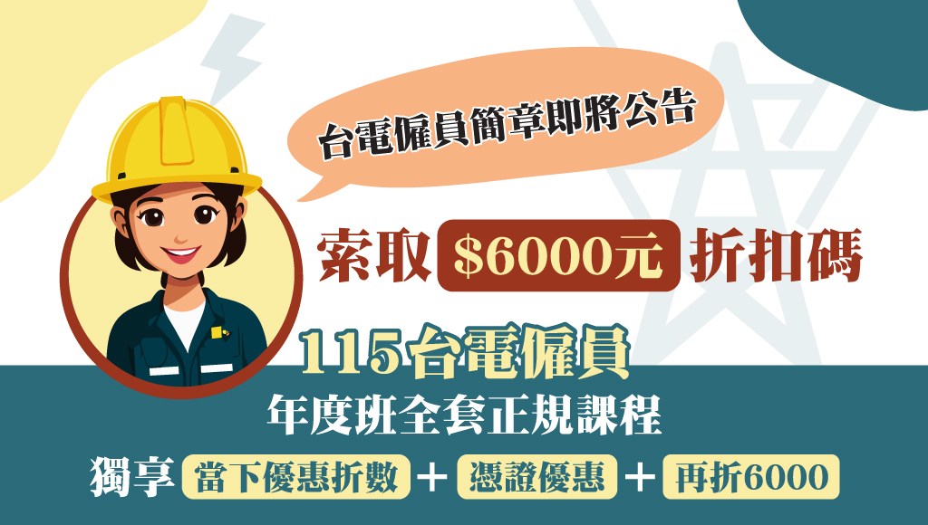 (1)台電僱員115年度正規課、短期題庫班課程,歡迎洽詢!