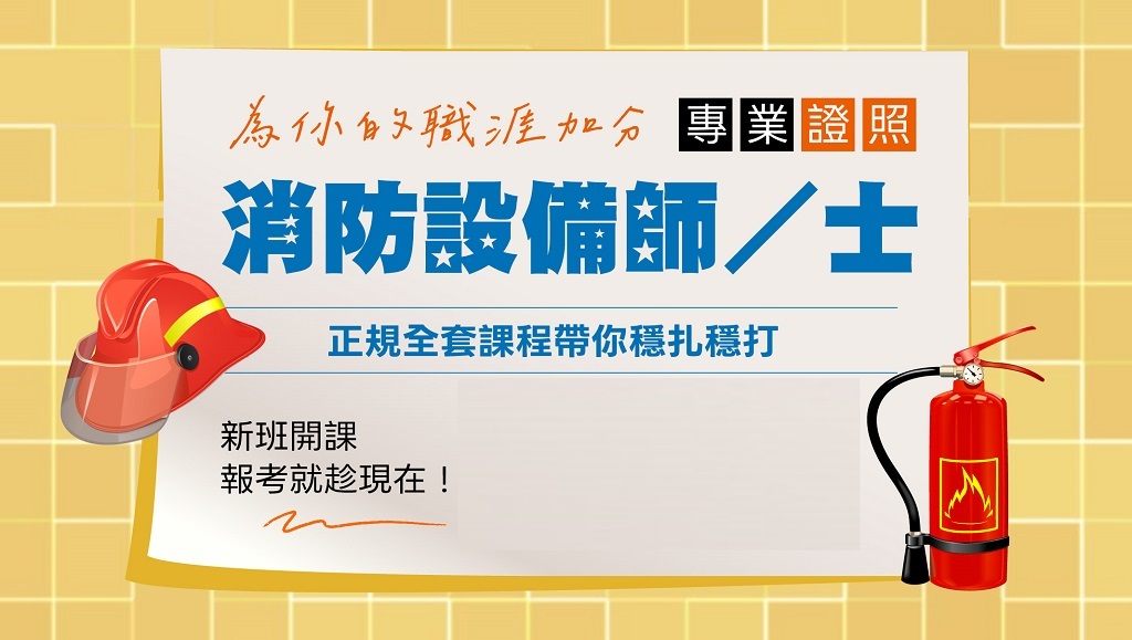 消防法大修法,全力強化消安,職業需求大增,一證到手,終身受用;消防設備師及 設備士課程!詳洽中和志光數位學院 02-66377551