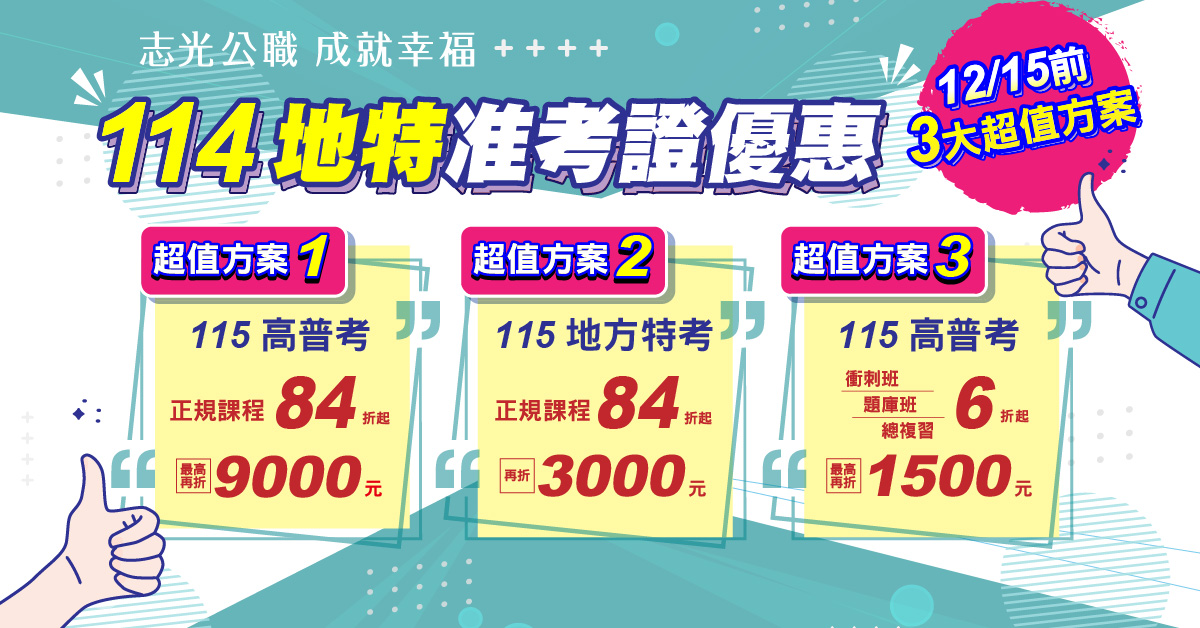 【地特准考證優惠】即日起-12/15 在地就職公務員!