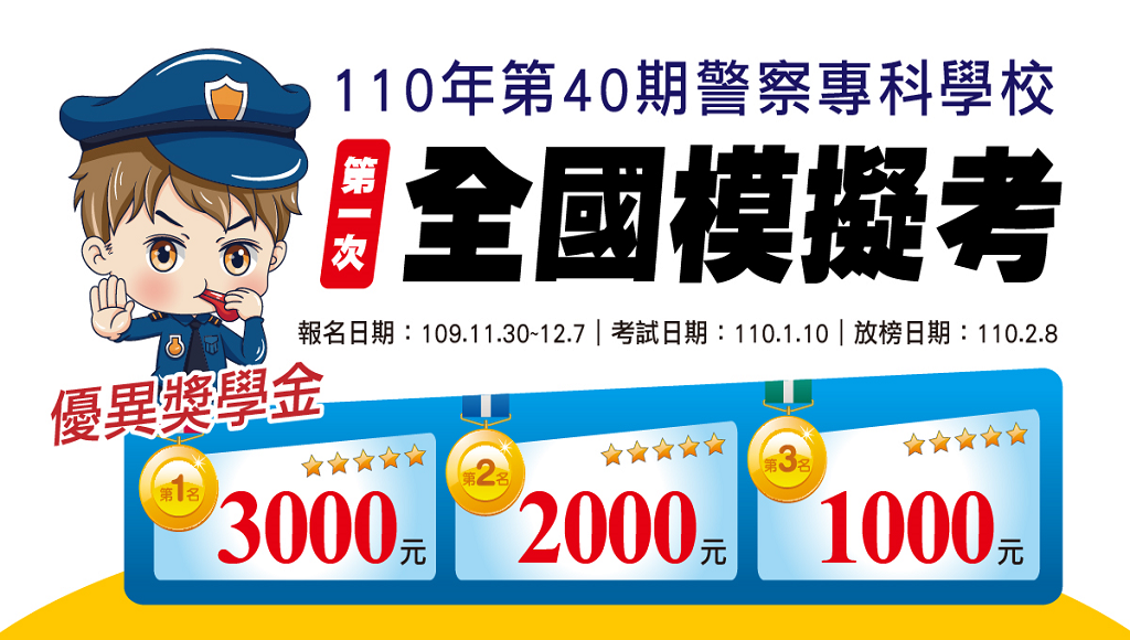 110警專40期第一次全國模擬考,報名即日起~12/7