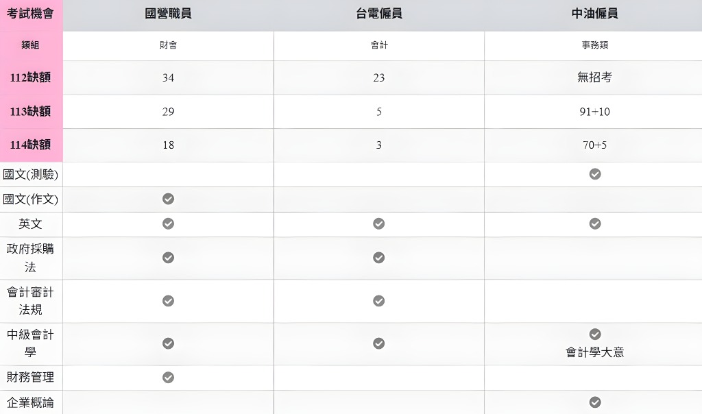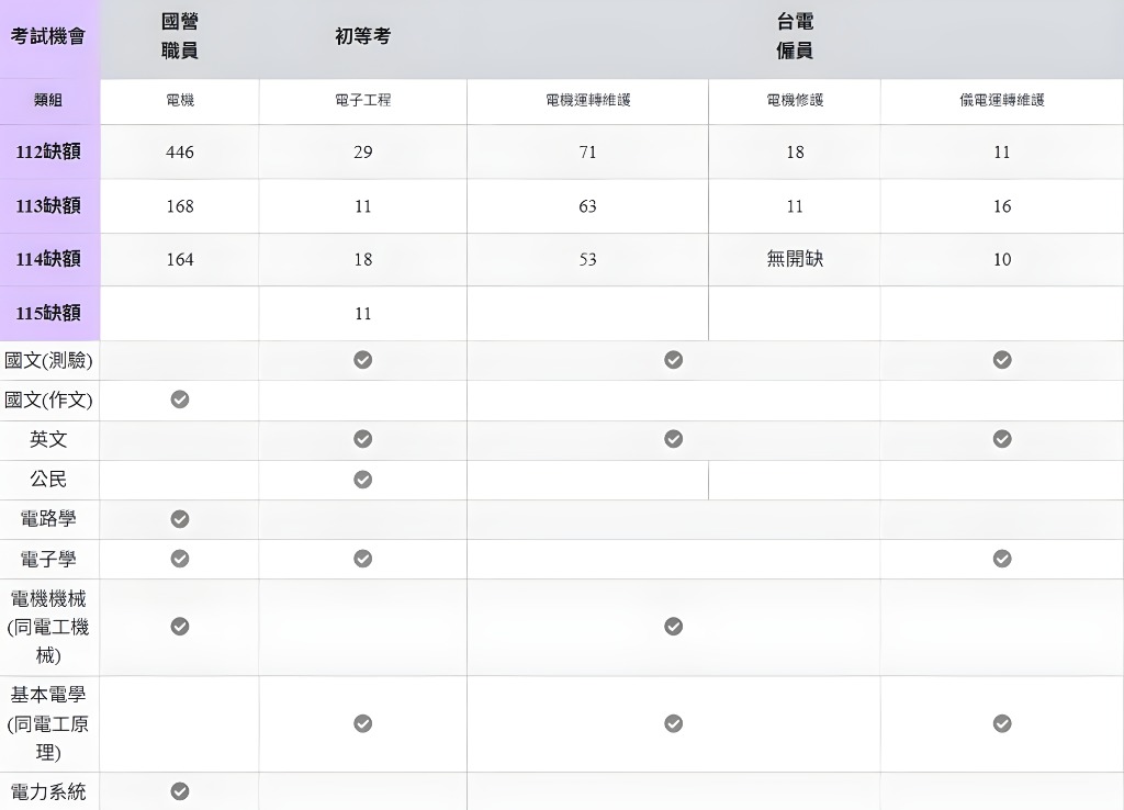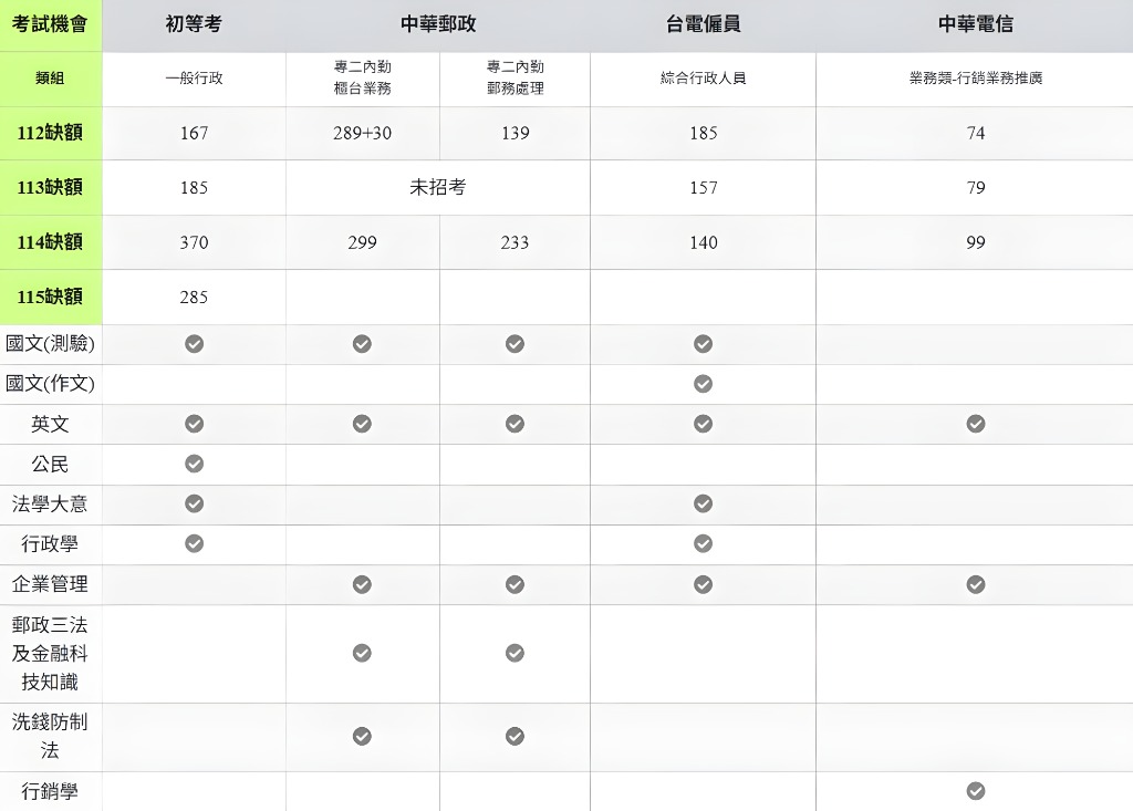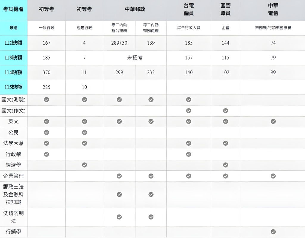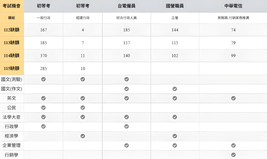 整理各類國營考試(台電、中油、自來水、台糖)投考組合與科目分析,幫你搭配出最適合自己的上榜路線!