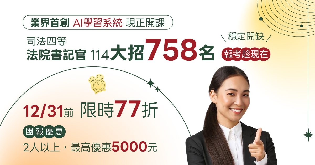 | 到班上課 超級函授 金榜函授 全面 77 折起 加LINE索取折扣碼領取專屬優惠 2人以上團報,最高再折5000元! ※適用辦法詳洽門市櫃檯人員※ |