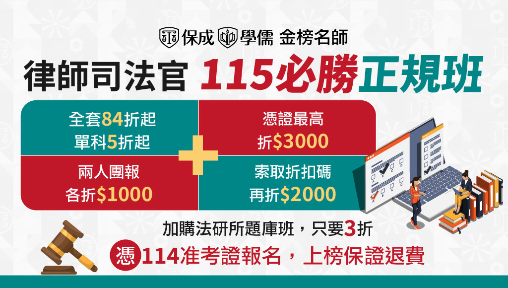 【律師司法官】二試精準解題 准考證優惠 ! 115新班強勢登場