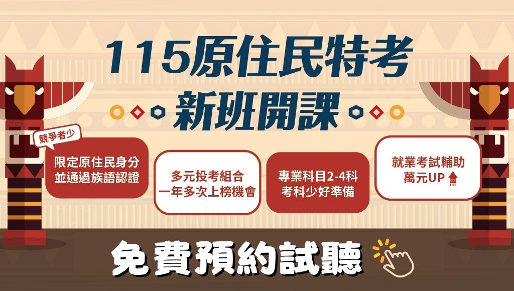 【原住民特考】族人專屬,競爭對手相對少,上榜更容易!