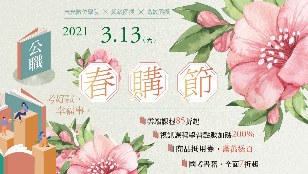 3/13八德志光公職春購節,全年最低優惠就在這,來班上課最高現折萬元、函授課程全面85折