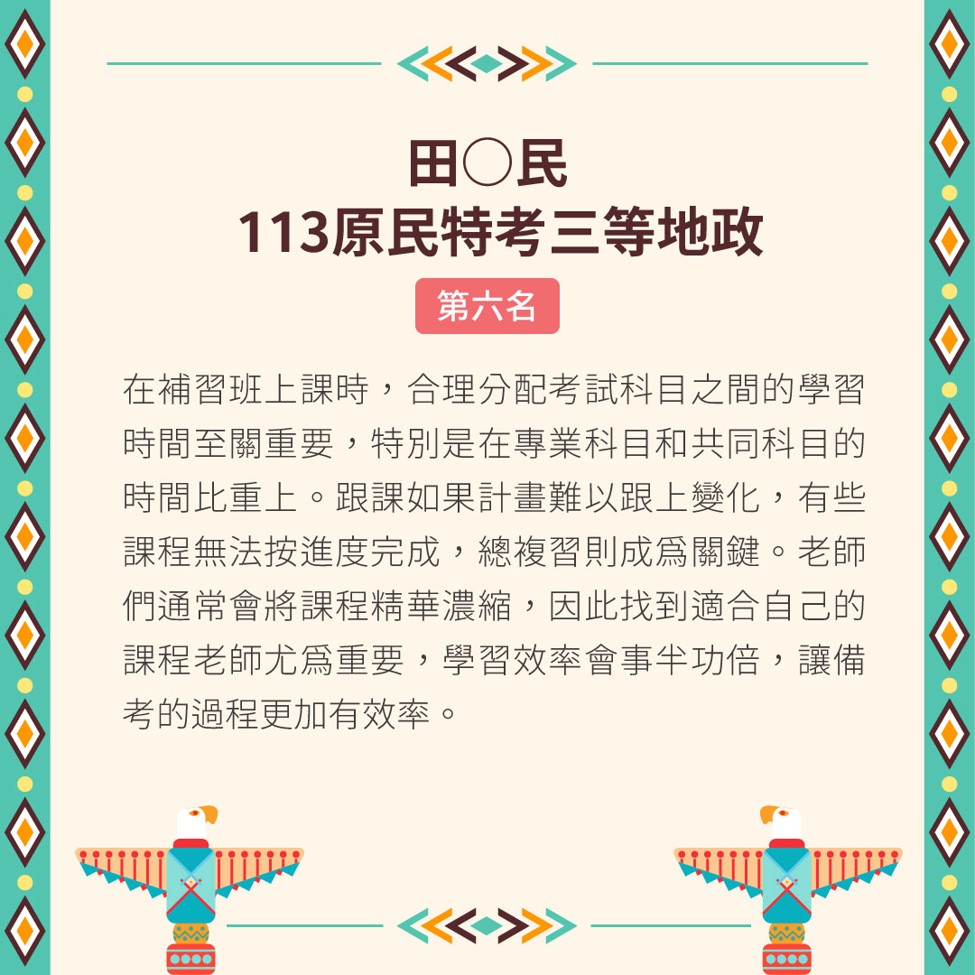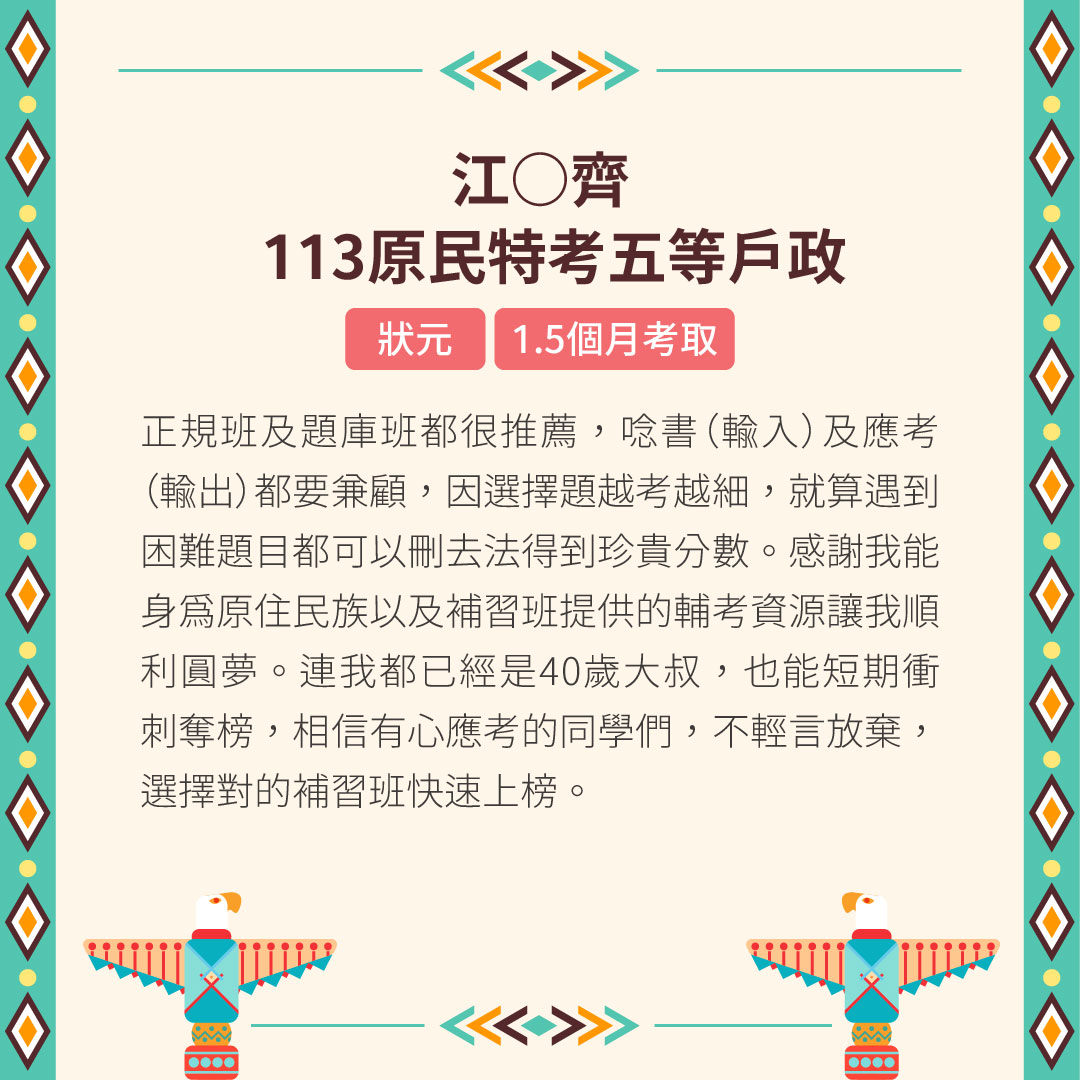 | 考試介紹 原住民特考為保障原住民族的就業權益並促進其參與公共事務,政府特別設置原住民族特別考試,提供其進入公職體系的機會。 |