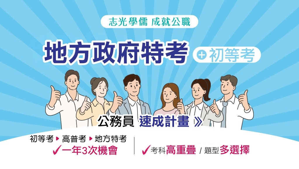 初等考與普考差異科目不大,後續可參加升等考或準備高普考、地方特考等考試。 |