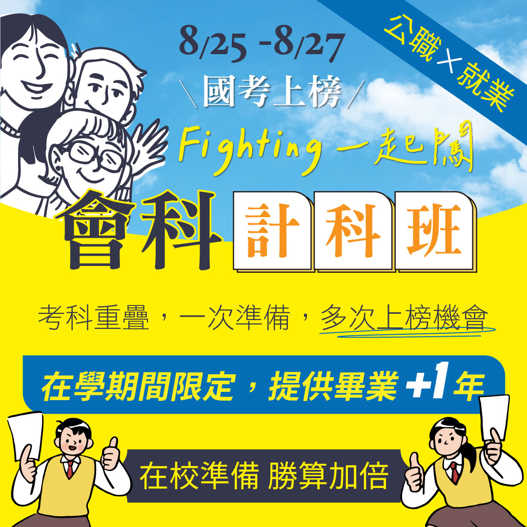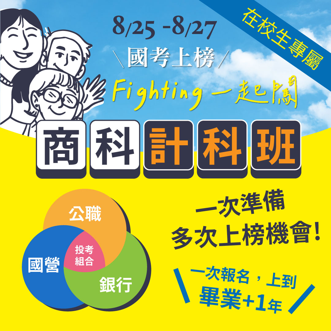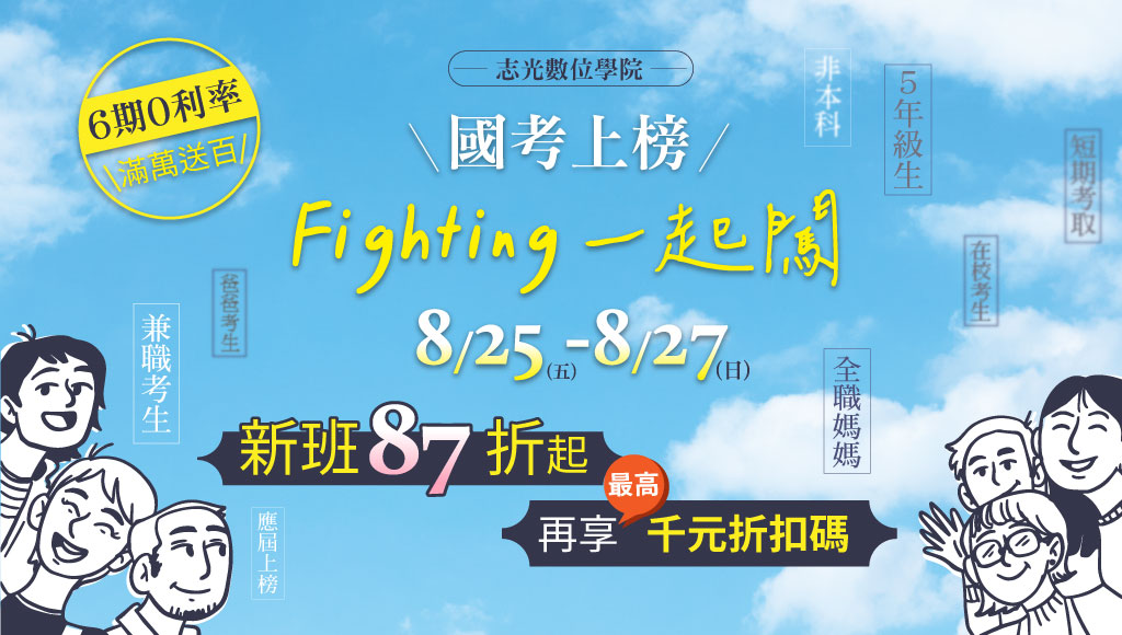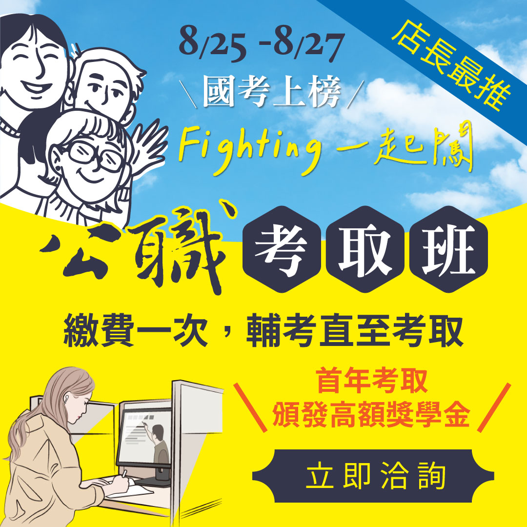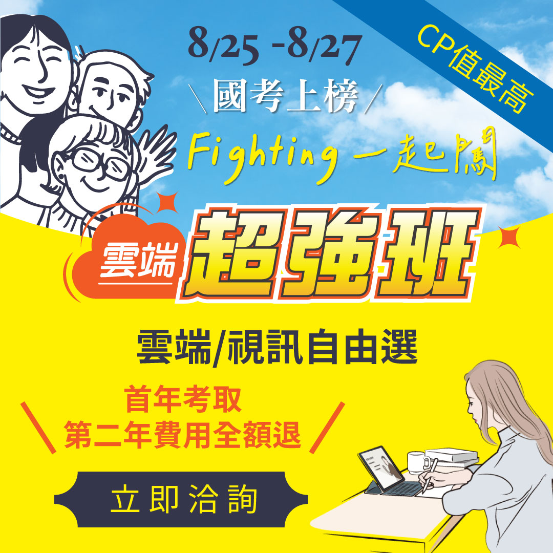 | 8/25~27國考上榜 Fighting一起闖 🐇每年破萬人考取,上榜唯一首選🐇 |