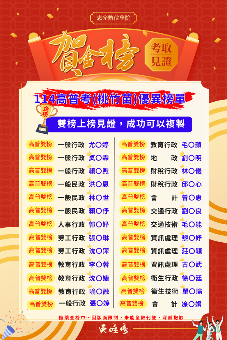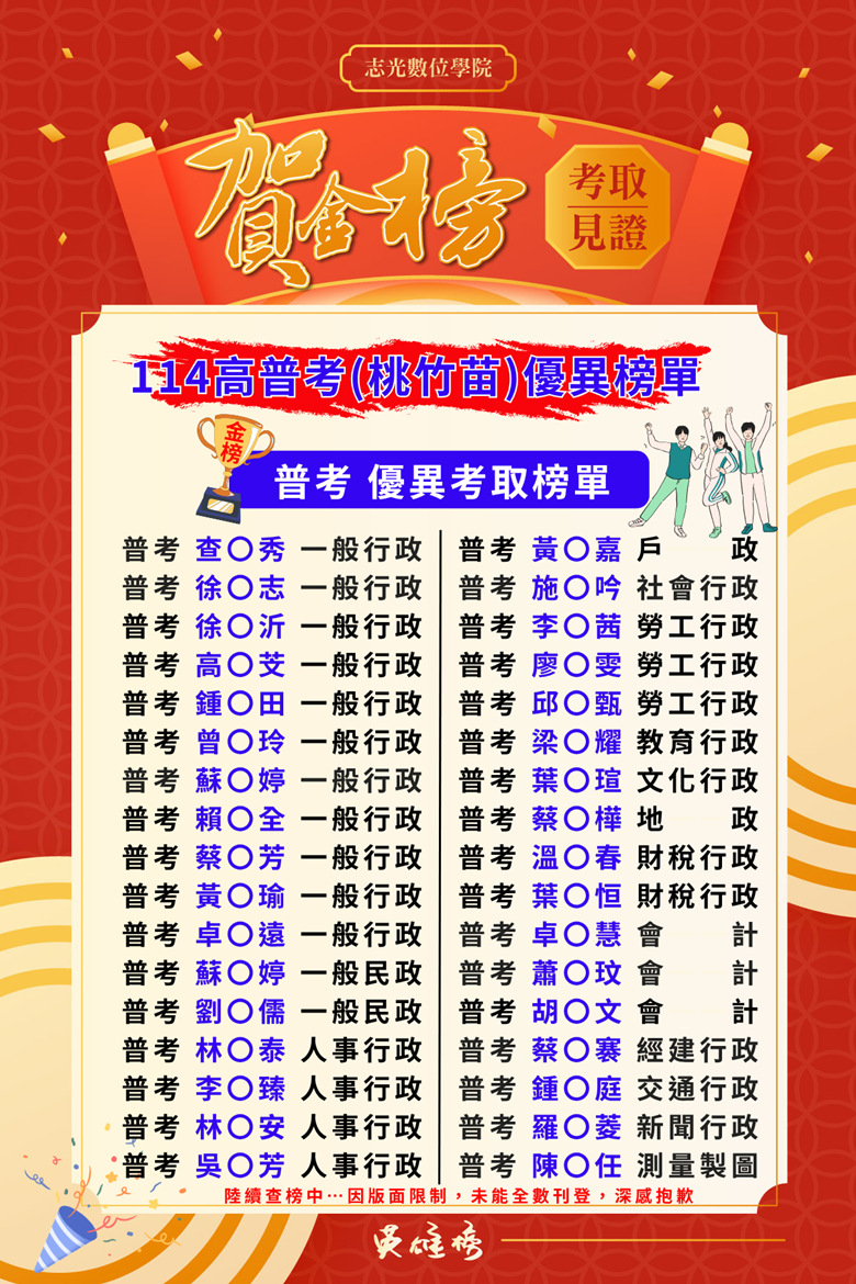 一般民政為高普考缺額最多的類科之一,每年穩定開缺,考試科目與地方特考、初等考相近,適合一次準備、多次報考。高普考每年3月報名、7月筆試,地方特考則於9月報名、12月考試。穩定缺額、薪資與福利,成為上榜熱門選擇。楊梅、埔心、富岡、新屋、湖口、平鎮、中壢、大溪地區考生最信賴的公職補習品牌,一致推薦:楊梅志光數位學院!