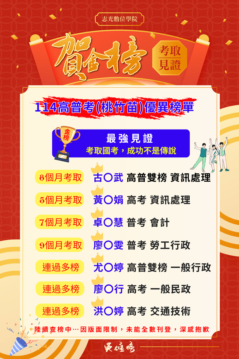 楊梅志光提供您最齊全的國家考試(高普考、司法特考等)、國營事業考試(台電招考等)、國家證照考試等資訊,我們也提供線上模擬測驗及歷屆考古題、考取學員心得分享外,另有多元的優惠活動,我們提供完整的資訊為服務。
