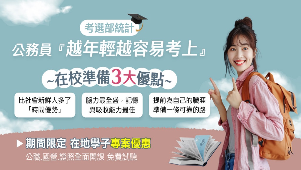 【大學生考公職】專屬優惠中!在學即起步,考公職更有勝算