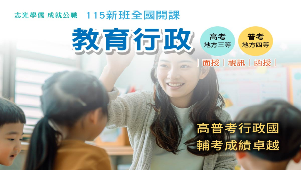 教育行政為高普考行政職的類科之一,每年開缺穩,考試科目與地方特考、初等考考科相近,適合一次準備、多次報考。高普考每年3月報名、7月筆試,地方特考則於9月報名、12月考試。穩定缺額、薪資與福利,成為學校公務員的最佳首選。香山、竹東、寶山等新竹地區考生最信賴的公職補習品牌,一致推薦:新竹志光數位學院!