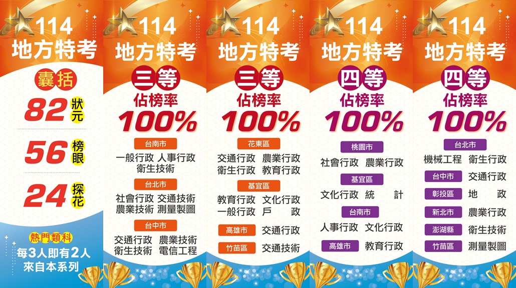 地方特考每年9月公告簡章、12月考試。初等考每年 10 月公告簡章、1 月考試,缺額穩定、薪水福利佳,是入門公職首選;搭配高普考、司法特考與台電考試,科目重疊度高,準備更有效率。考古題下載、完整課程規劃,新竹市最受推薦的公職補習班就在新竹志光。
