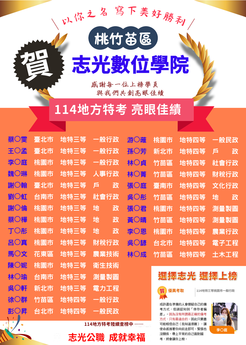 📌新竹、竹北、寶山、香山、東區、北區、新豐、湖口、新埔、芎林、竹東指名新竹志光公職補習班 -在地居民享專屬小禮品。