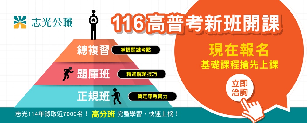 | 報名115年度高普考『高分班』、『年度班』課程,享優惠6000元 |