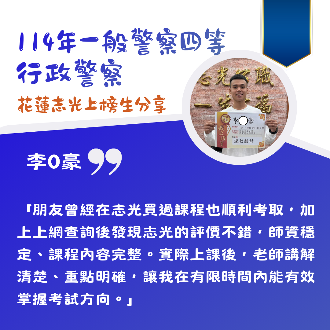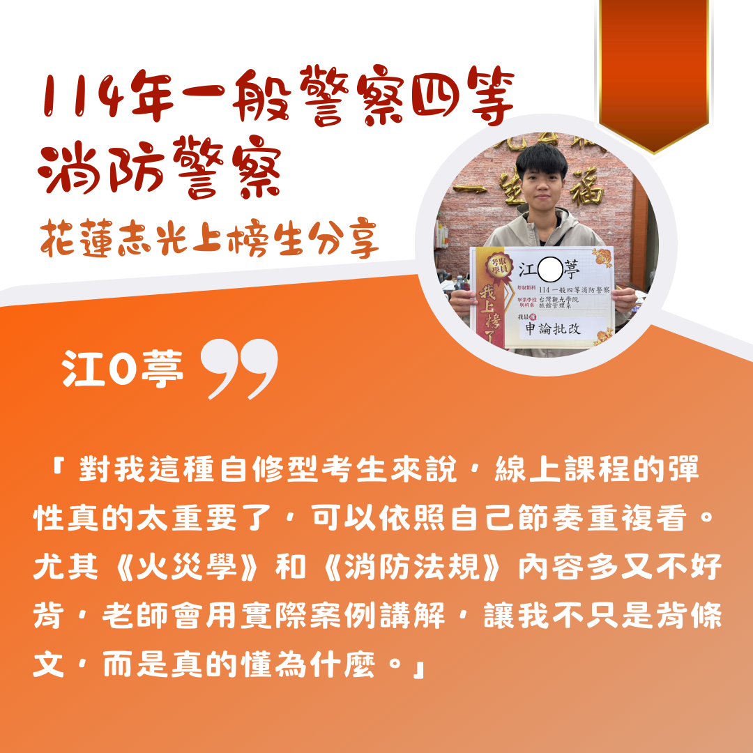 花蓮志光 115一般警察四等-行政/消防 新班開課中