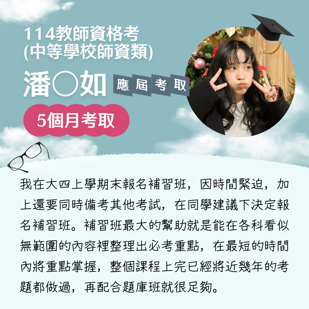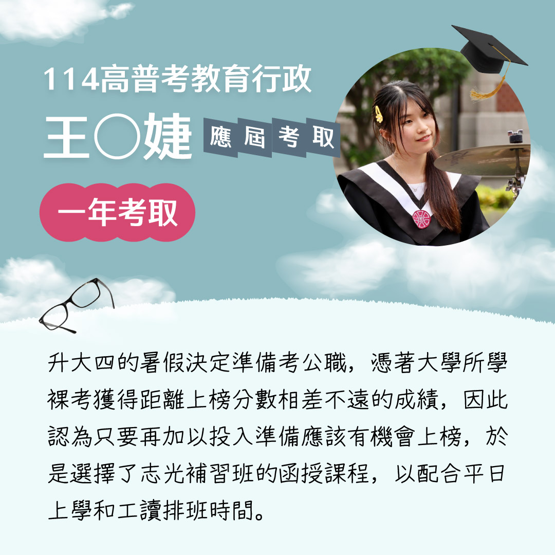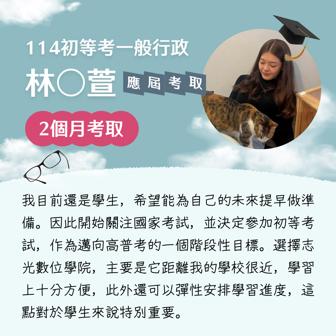 | 【在校專班】在校準備,應屆上榜! 五大獨家優勢 跨領域學習,公職考試/國家就業皆可報考。 想要兼顧課業?雲端函授讓你自主安排學習進度! 專業師資指導,學科知識與考試技巧一次擁有。 時事修法、最新資訊與時俱進! 課程資訊年年更新,命題趨勢及時掌握。 學習時間彈性 每年可任選科目,輔導至畢業後+1年 全面獨享在校生專屬優惠方案 |