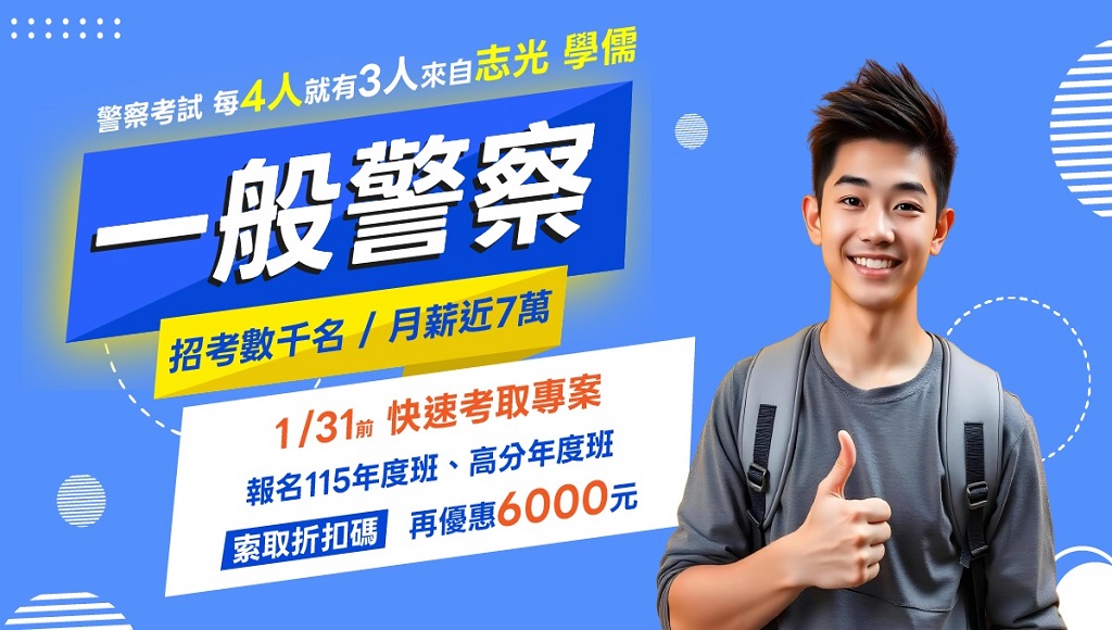 花蓮志光 115年一般警察1月優惠84折起 指定班別再折6千