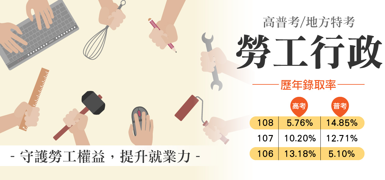 勞工行政顧名思義,就是和勞工有關的行政工作,包含勞工政策之擬訂、勞動人力的規劃、勞動檢查、勞動條件、勞資關係、勞工福利、勞工保險、勞工安全衛生、職業訓練、技能檢定、就業輔導與促進、勞工統計、勞工團體、國際勞工事務及外勞管理等工作。
