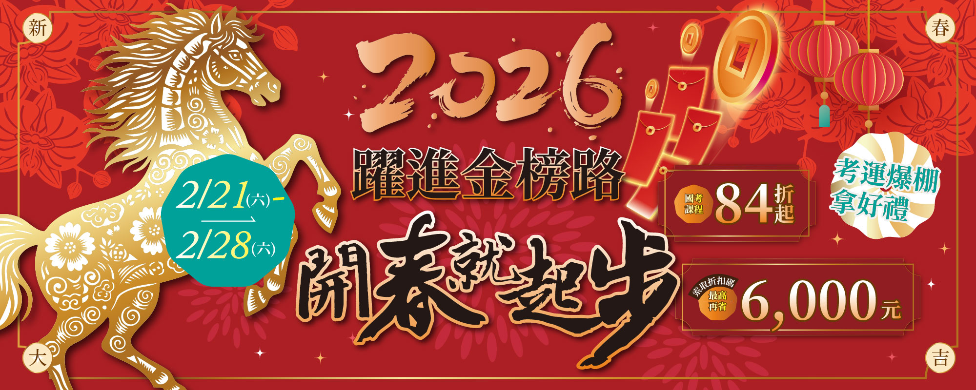 2/21-28「躍進金榜路 開春就起步」,課程優惠84折起