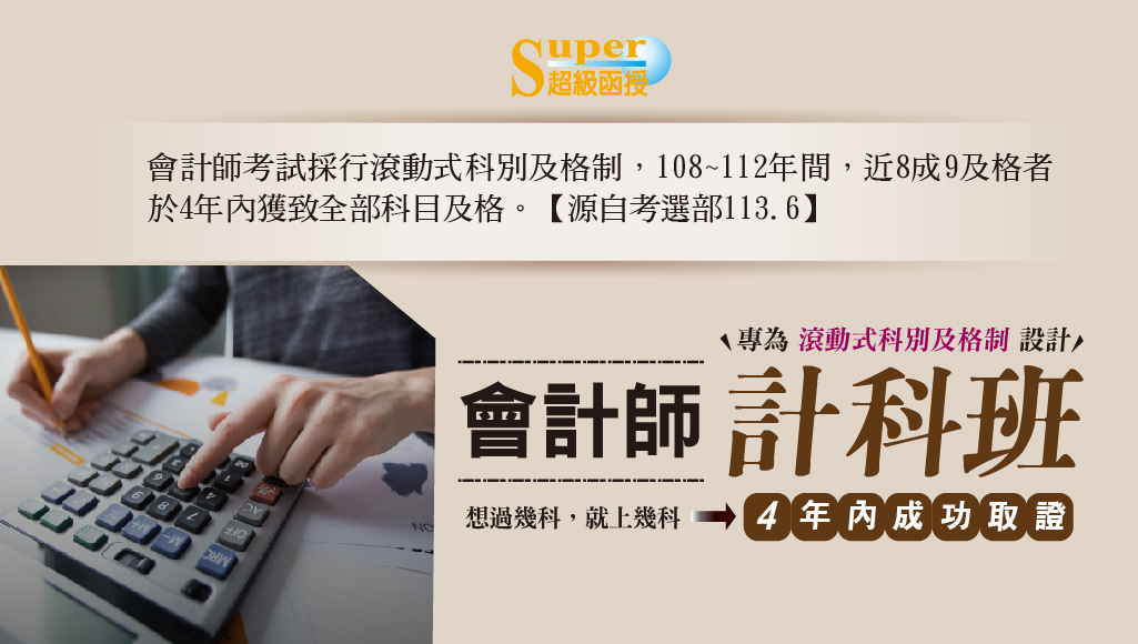 自108年起會計師改採滾動及格制,各科目分別計算及格保留年限,效力自合格該次考試之日起保留3年,準備上將減輕壓力,更有利於考生