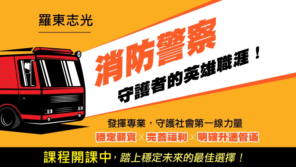 消防警察新班熱烈招生中!四等考試缺額穩定 公職高薪保障,非相關科系也能考取。羅東志光專業輔考,公職高薪保障,完整師資課程,陪你一路上榜,開啟穩定公職人生。