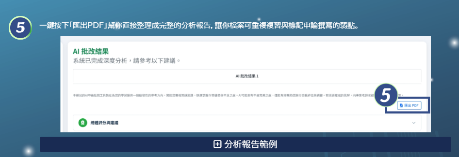 • 高效匯出報告: 批改結果可輕鬆匯出 PDF,方便您整理與查閱。
