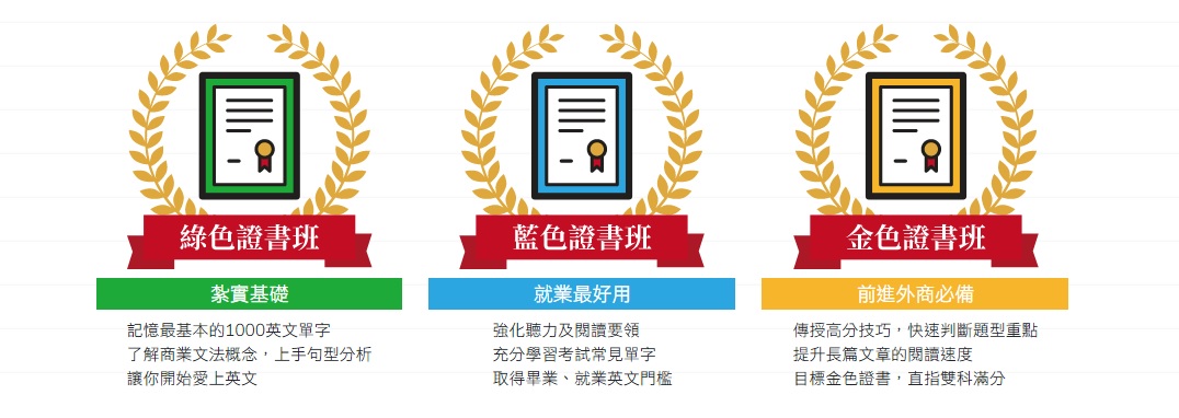 | 連續2年提供當年度課程教材&雲端課程 | 首年為雲端課程,第2年繳換證費升級視訊考取班 |