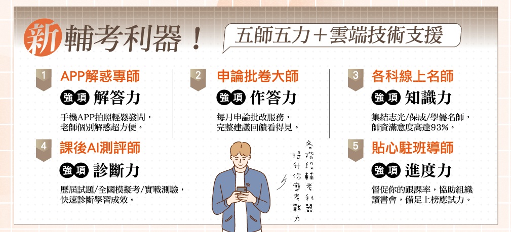 1.頂尖師資-名師隨待在側,再加碼每月申論批改。