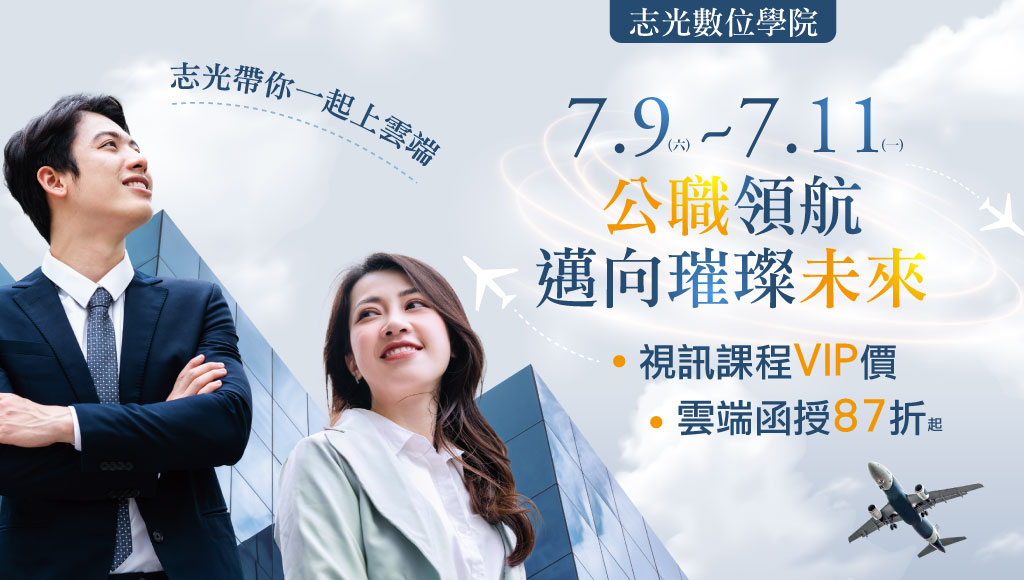 羅東志光 7/9-11公職領航~視訊課程VIP價,函授課程87折起