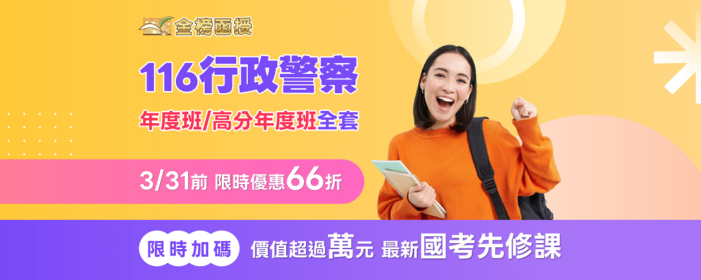 台東警察補習班∣台東志光2026/115年度一般警察特考四等行政警察∣新班開課火熱開課招生中∣函授課程、視訊課程、雙效學習方案自由選。高中(職)畢業也能擁有穩定又高薪的好工作,『一般警察人員考試』是您最佳的選擇!錄取率高、不限性別,男女皆宜,排除警校體系(警察大學、警察專科學校),是一般大眾進入警界的最佳管道,而且還沒當兵也可以考!115年度行政警察全新開班授課,無觀看次數限制、含上課使用教材、超級解惑王APP線上課業諮詢服務、申論批改...更多加值服務~速洽台東志光數位學院089-343125