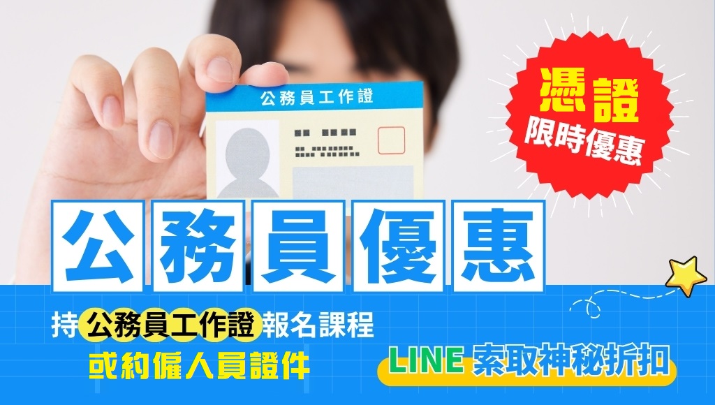 公務員國營單位工作證、約僱人員工作證,想晉升或轉職通通享學費1000元折扣