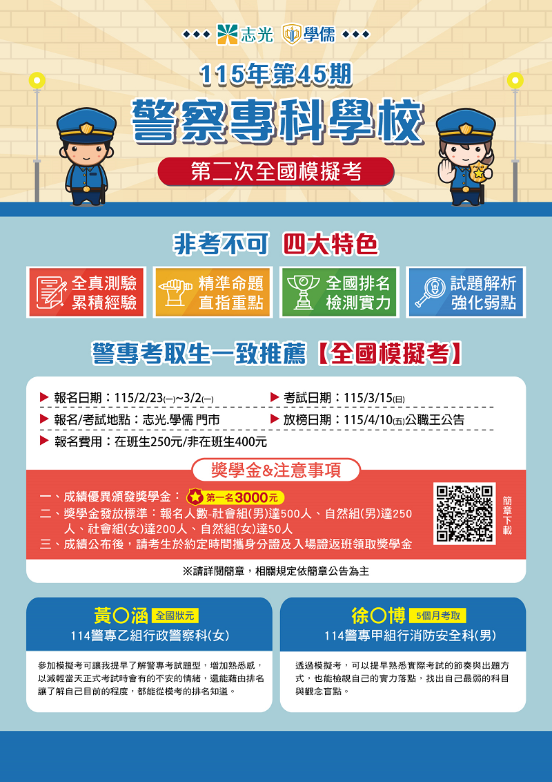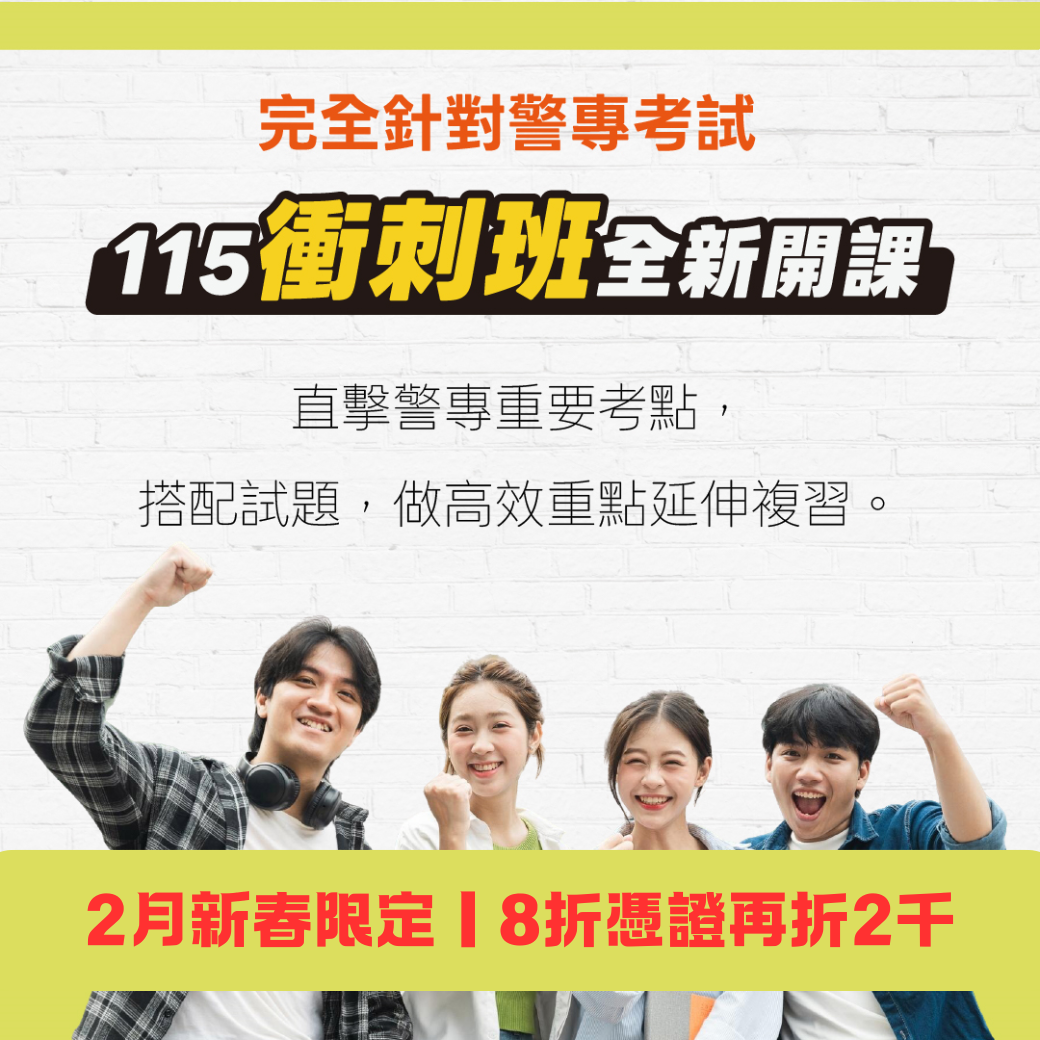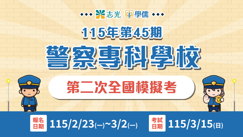 台東志光115警專全國模擬考(第二次)2/23-3/2開放臨櫃報名