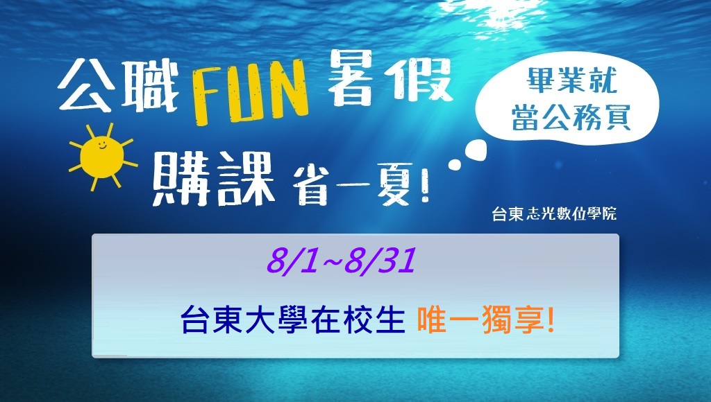 台東大學FUN暑假8/1~8/31在校生拚國考,學生優惠再減千元