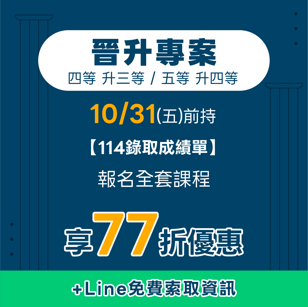 報名後各考試課程服務及看課期限,提供至當年度考試日當月月底截止。課程提供的觀看期限內不限觀看次數、無點數制度、想看就看,課程可重覆複習,達到高效學習。