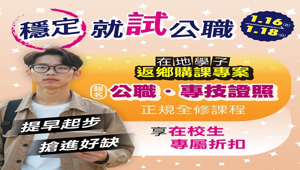 1/16-18穩定就「試」公職 課程84折起,加LINE好友最高折6千
