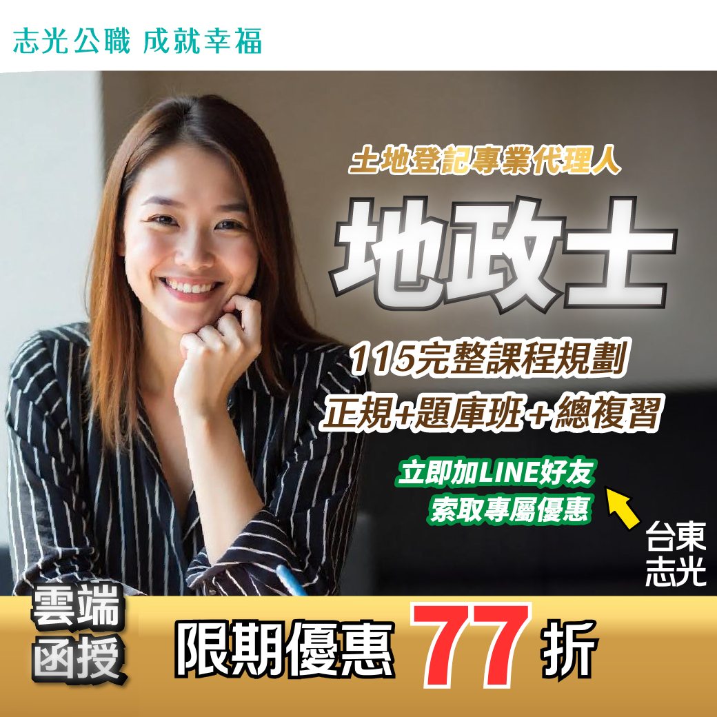 2026最新台東志光公職地政類考試,高普地政+地方特考地政+專技普考地政士+不動產經紀人考試開課簡介: 開課資訊、課程班別說明、學習模式說明、購課優惠、購課常見問題解惑Q&A