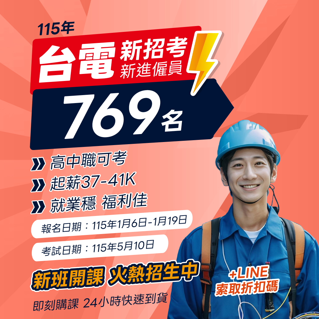 114年12月24日公告台灣電力公司115年度新進僱用人員預計名額769名,涵蓋電力技術、綜合行政、會計等多元類別,高中職畢業即可報考,對於社會新鮮人、轉職族來說,都是相當具吸引力的國營就業機會。