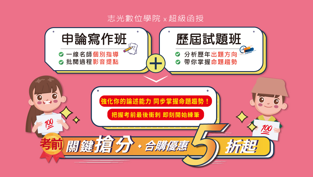申論歷屆試題班|行政學‧行政法‧民法‧刑法-超級函授/志光數位學院,全國一線名師都幫你整理好了!分析歷年出題方向,帶你掌握命題趨勢,梳理脈絡,精準備考方向!