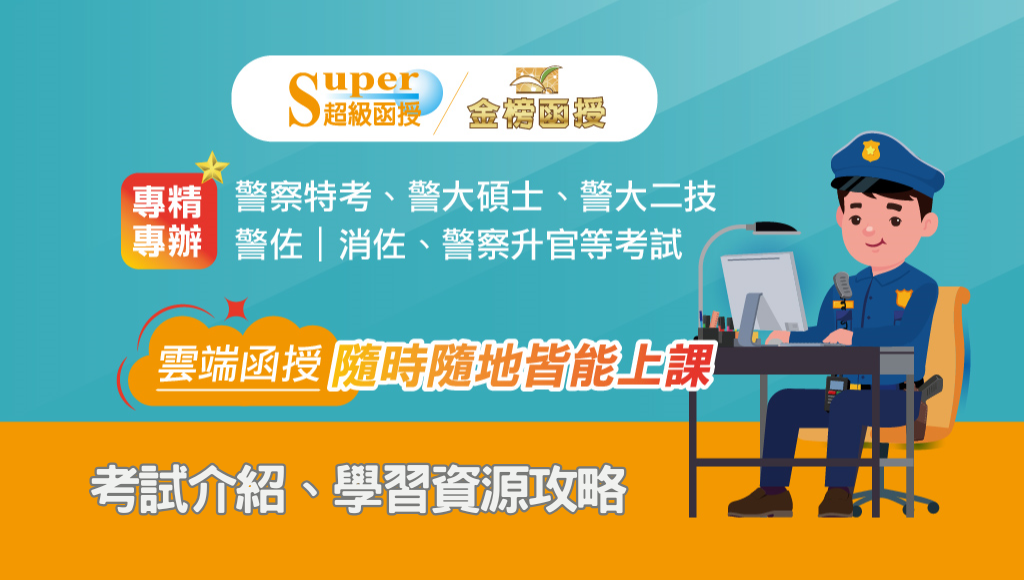 ◎1.國文(作文80%、測驗20%) ◎2.中華民國憲法與警察專業英文(憲法50%;英文50%,其中申論25%,測驗25%) ◎3.警察情境實務(包括警察法規、實務操作標準作業程序、人權保障與正當法律程序) ◎4.警察法規(包括警察法、行政執行法、社會秩序維護法、警械使用條例、集會遊行法、警察職權行使法、公務人員行政中立法) 5.犯罪學與犯罪預防 6.犯罪分析 7.諮商輔導與婦幼保護 |